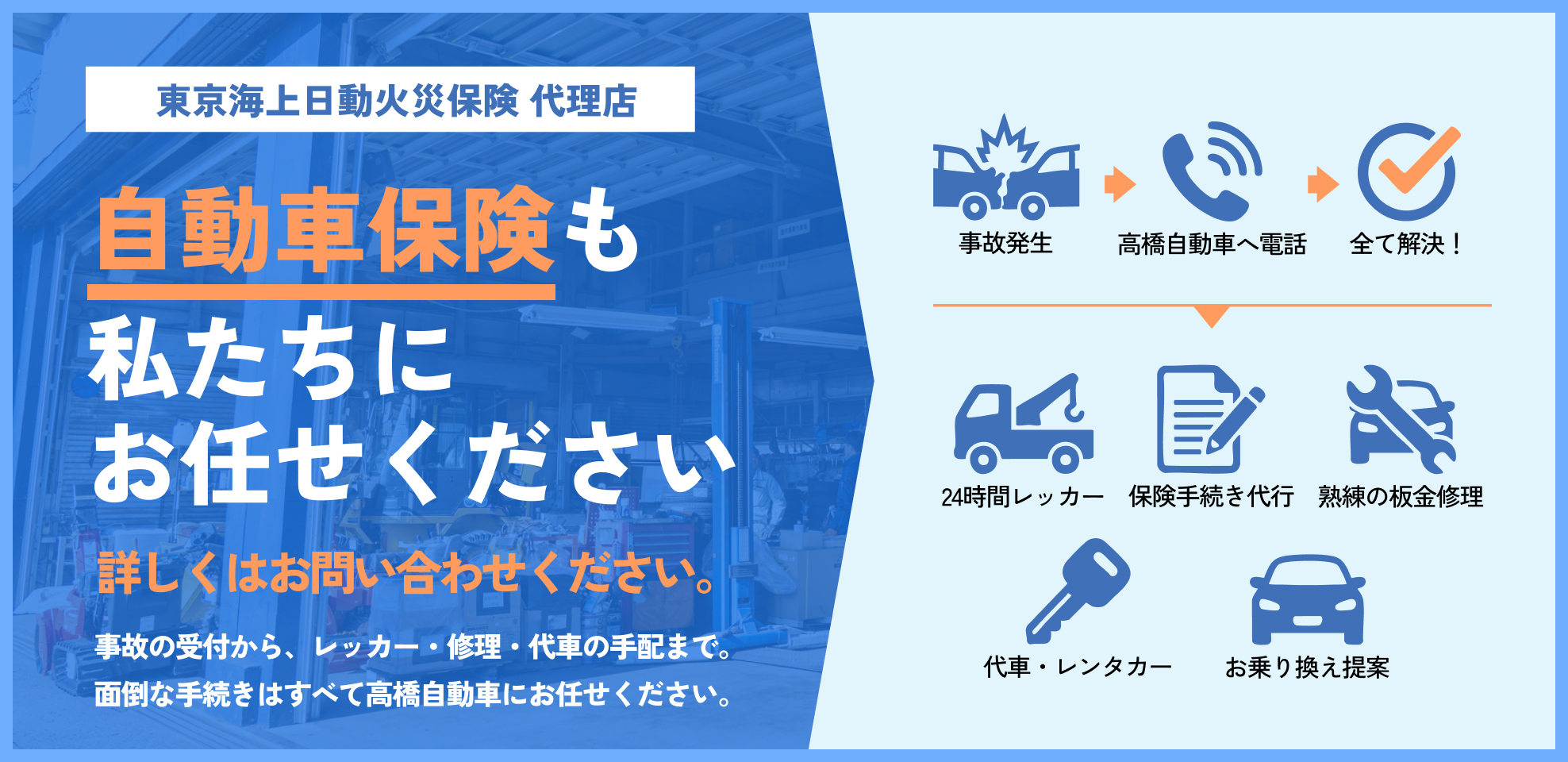 小さなキズから大事故の修理まで。熟練の技と最新設備で、愛車を美しく元通りに。