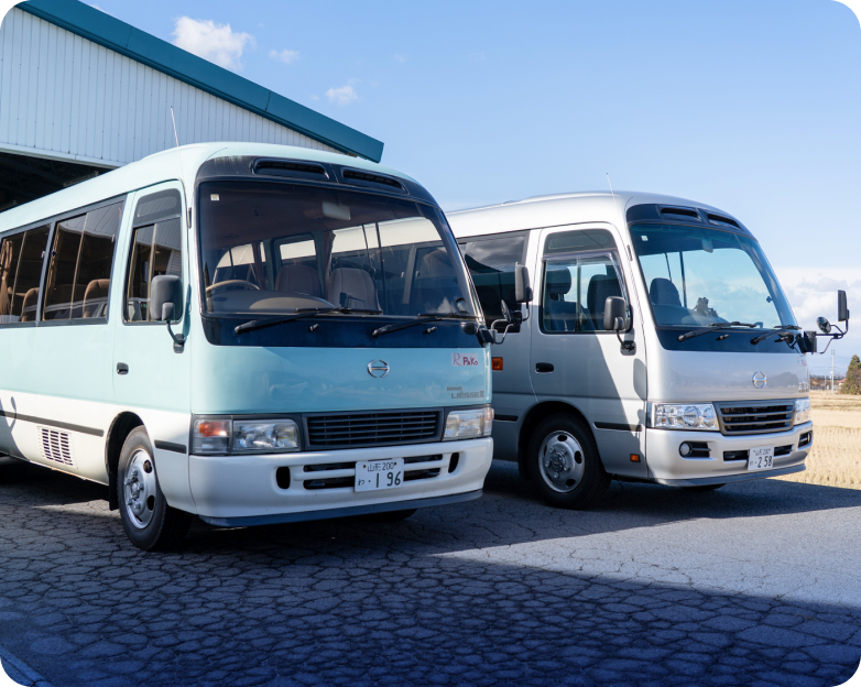 送迎や部活動、冠婚葬祭に便利な「マイクロバス」から、引越しや農作業に頼れる「軽トラック・バン」まで幅広く完備しています。大手にはない地域密着ならではのラインナップをご用意。自社工場のプロが隅々まで整備した清潔・安全な車両で、地域の皆様のビジネスや暮らしをしっかりサポートします。