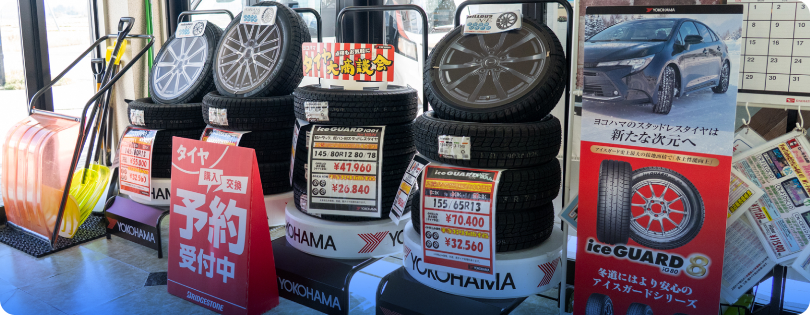 サマータイヤからスタッドレスまで、軽自動車〜大型車用の各サイズを豊富に取り揃えています。店頭にない銘柄や特殊なサイズも迅速にお取り寄せ可能。「どれを選べばいいか分からない」という方もご安心ください。ご予算や走行距離に合わせ、プロが最適な一本をご提案します。